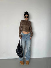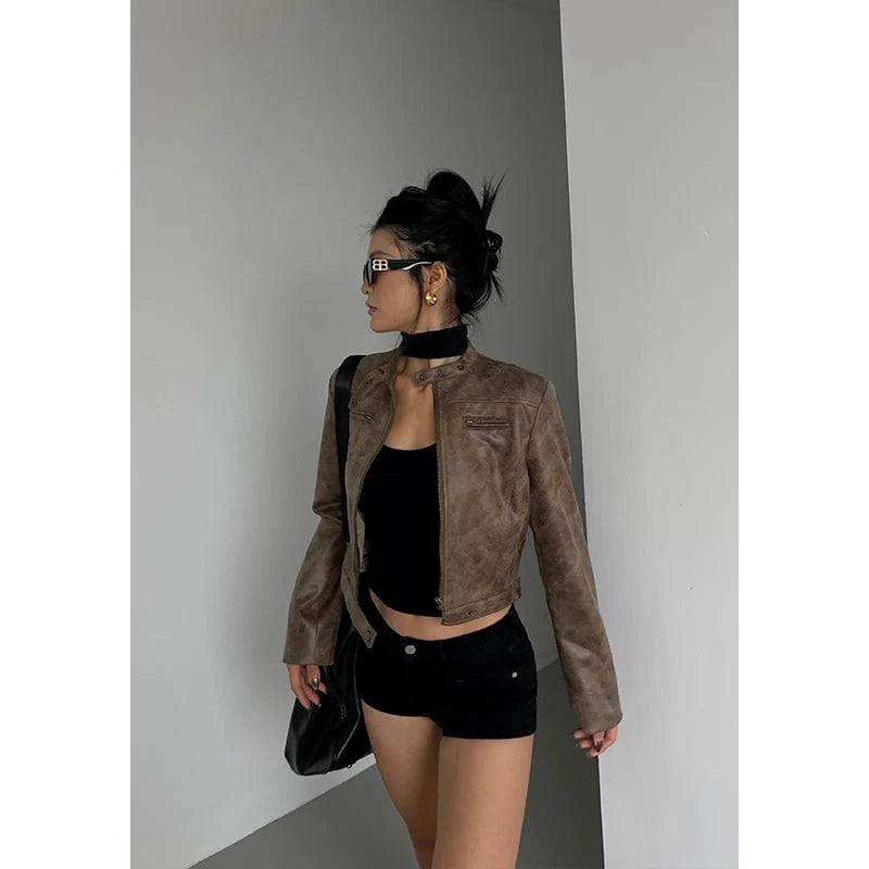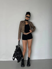 Short motorcycle jacket for women