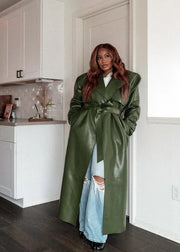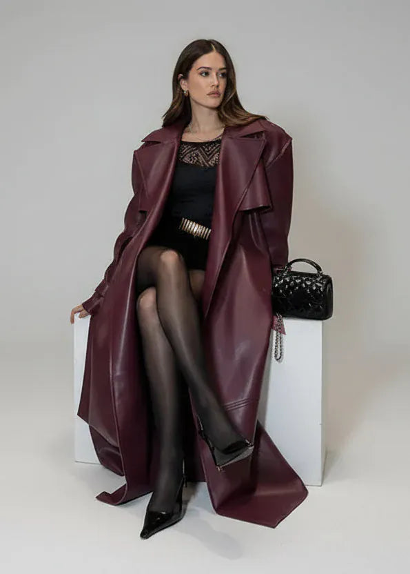 Elevate your street style with this sleek PU leather long coat—the ultimate power piece for anyone who wants to turn heads. Crafted from premium synthetic leather, it drapes beautifully while keeping you cosy and protected from the elements. The extended length creates an effortlessly chic silhouette that works with everything from jeans to dresses. Whether you're channelling edgy sophistication or casual cool, this coat is your new go-to for making a statement. Timeless, versatile, and undeniably stylish.