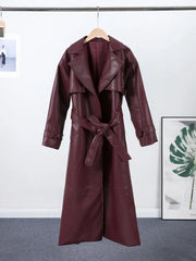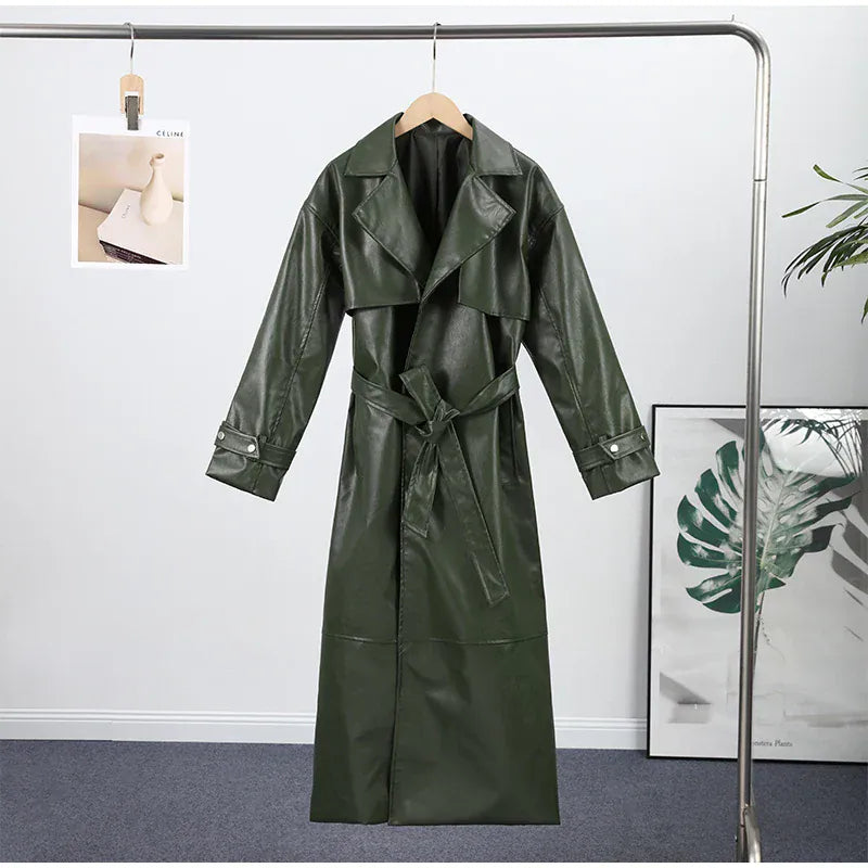 Street Pu Leather Women Long Coat