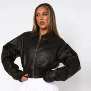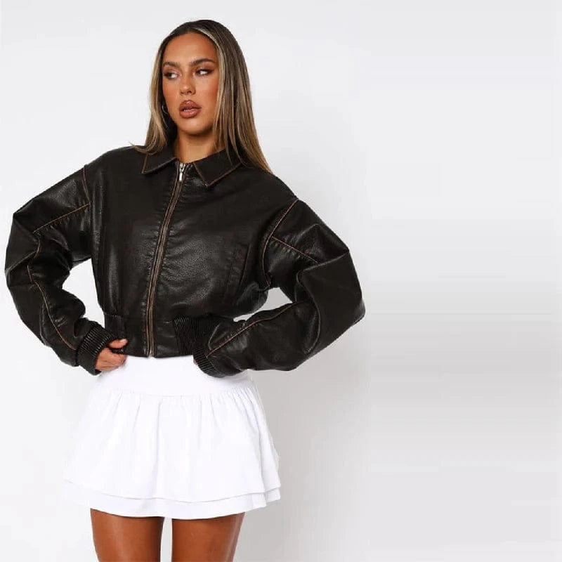 Step out in style with this Vintage Women PU Leather Jacket. Crafted with soft, durable PU leather, it adds a timeless edge to any outfit. Perfect for layering, its retro vibe brings playful flair while keeping you comfortably chic. Whether you’re heading out for a casual day or dressing up for the night, this jacket effortlessly turns heads with classic cool