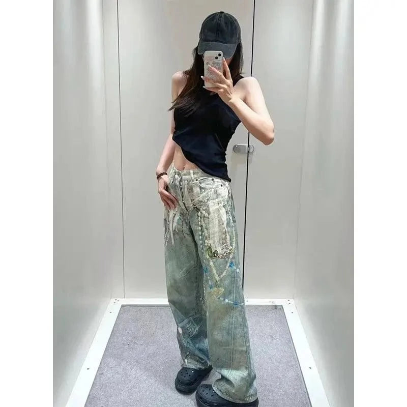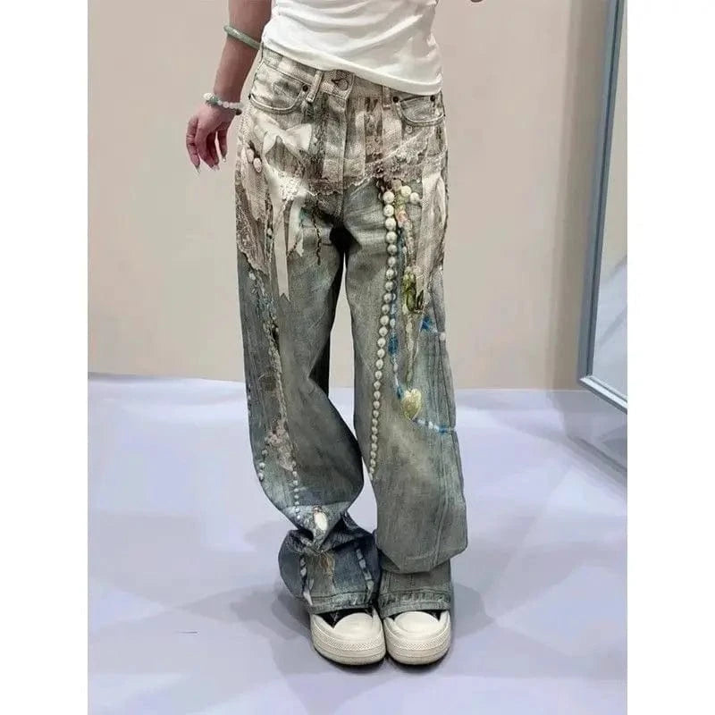 Women’s Wide Leg Chain Print Jeans
