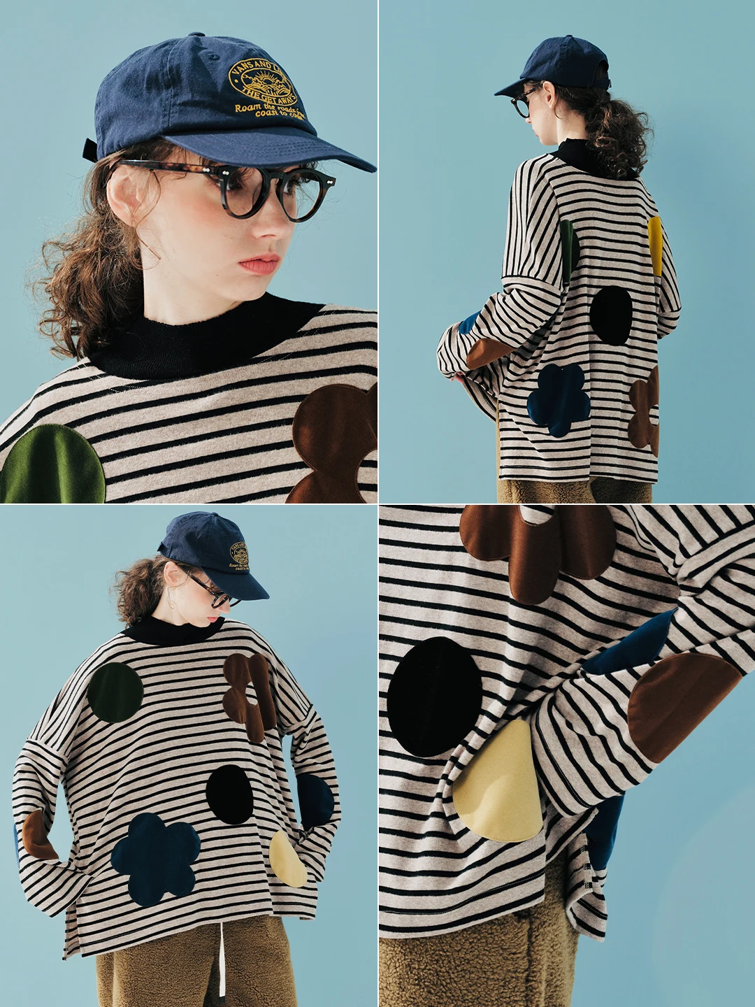 Brighten your wardrobe with this charming striped tee featuring delicate embroidered flowers that add a whimsical touch to everyday style. The classic stripe pattern pairs perfectly with the floral details, creating a look that's effortlessly fun and versatile. Whether you're dressing up for a casual outing or keeping it relaxed at home, this comfortable essential brings a splash of personality to any outfit. Perfect for those who love a bit of botanical flair mixed with timeless stripes.