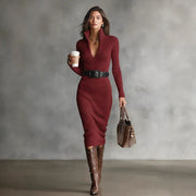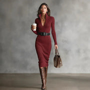 Elevate your everyday wardrobe with this sophisticated turtleneck maxi dress, designed for the modern woman who values both comfort and style. Crafted from high-stretch polyester, this dress features a flattering slim fit with a natural waistline and elegant patchwork detailing. The long sleeves and turtleneck collar provide warmth and a polished look, while the sheath silhouette creates a refined, elongated shape. Perfect for casual outings, work, or special occasions, this versatile piece transitions seamlessly from season to season. Ideal for those seeking European-inspired elegance with contemporary flair.