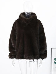 Wrap yourself in luxury without the guilt! This oversized faux fur coat is your ticket to red-carpet glamour on the high street. The plush, touchable texture feels incredibly indulgent, while the attached hood adds a chic, practical edge. Perfect for layering over anything from casual jeans to evening wear, this statement piece transforms any outfit into something utterly fabulous. Cosy, cruelty-free, and undeniably show-stopping.