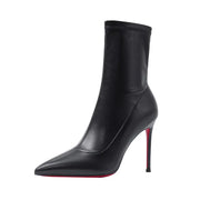 Women's Black Elastic Slim Fit Leather Pointed-Toe Ankle Boots