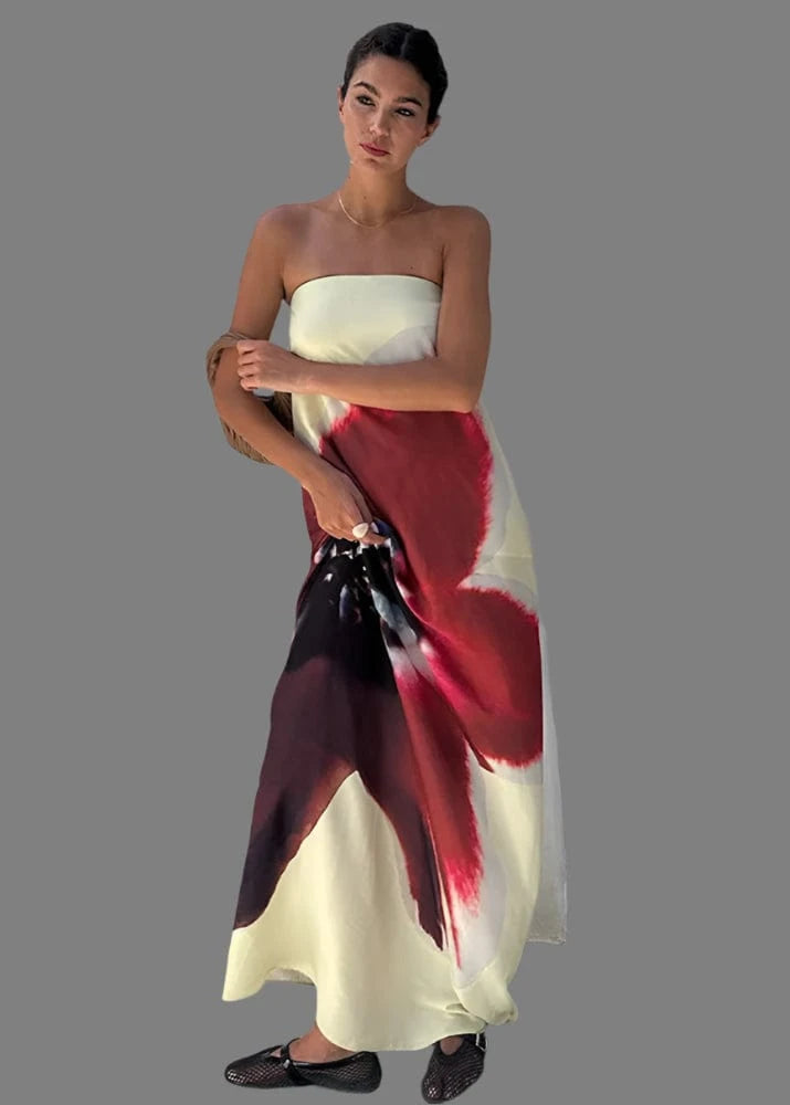 Unleash your free spirit and embrace the warm weather with our Strapless Floral Maxi Dress. Perfect for any occasion, this dress offers a flattering fit with its strapless design and flowy, floral pattern. Embrace effortless style and comfort with this must-have addition to your wardrobe!