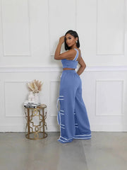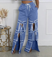 Striped wide leg pants women