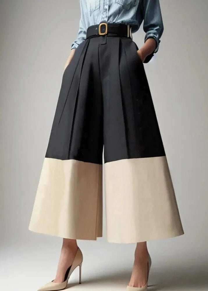 Make a statement with these playful wide-leg pants. Featuring contrasting colors, these pants are both stylish and comfortable. Perfect for any occasion, these pants will take your outfit to the next level. (Wide-leg pants that are both stylish and comfortable? Yes, please!)