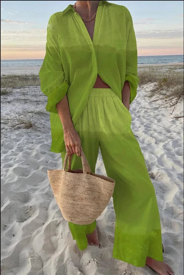 Step into sunshine with this Women's Summer Suit Set—where comfort meets style for your warm-weather adventures. Lightweight fabrics keep you cool while the playful design adds a splash of charm to your day. Perfect for brunches, strolls, or simply embracing the sunshine in effortless elegance.