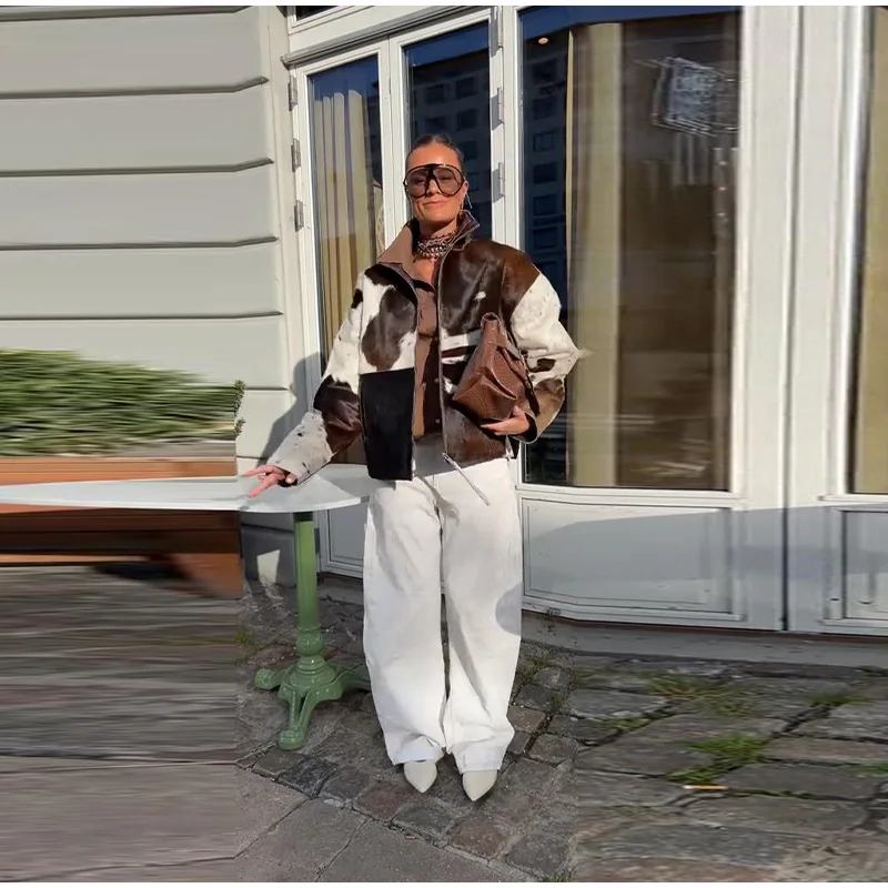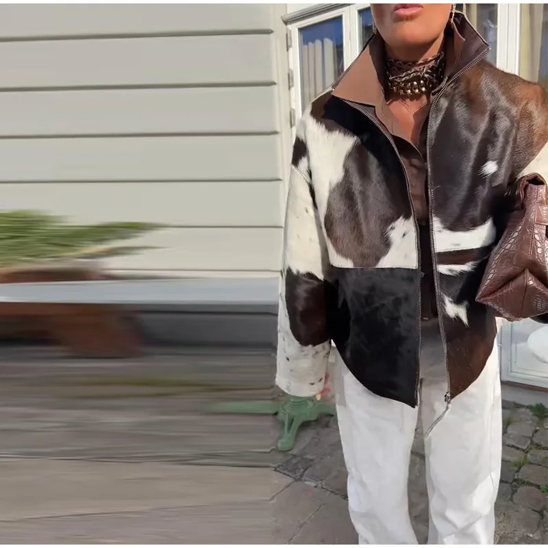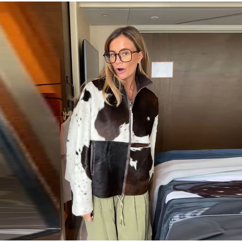 Model Number: Casual Women's Long Sleeve Jacket With Cow Pattern