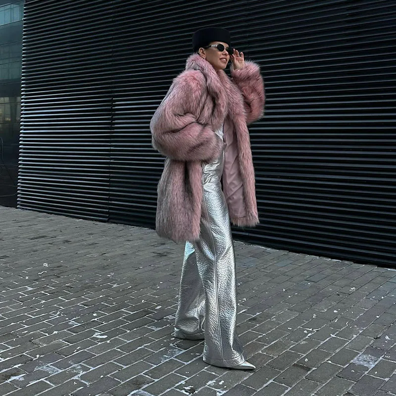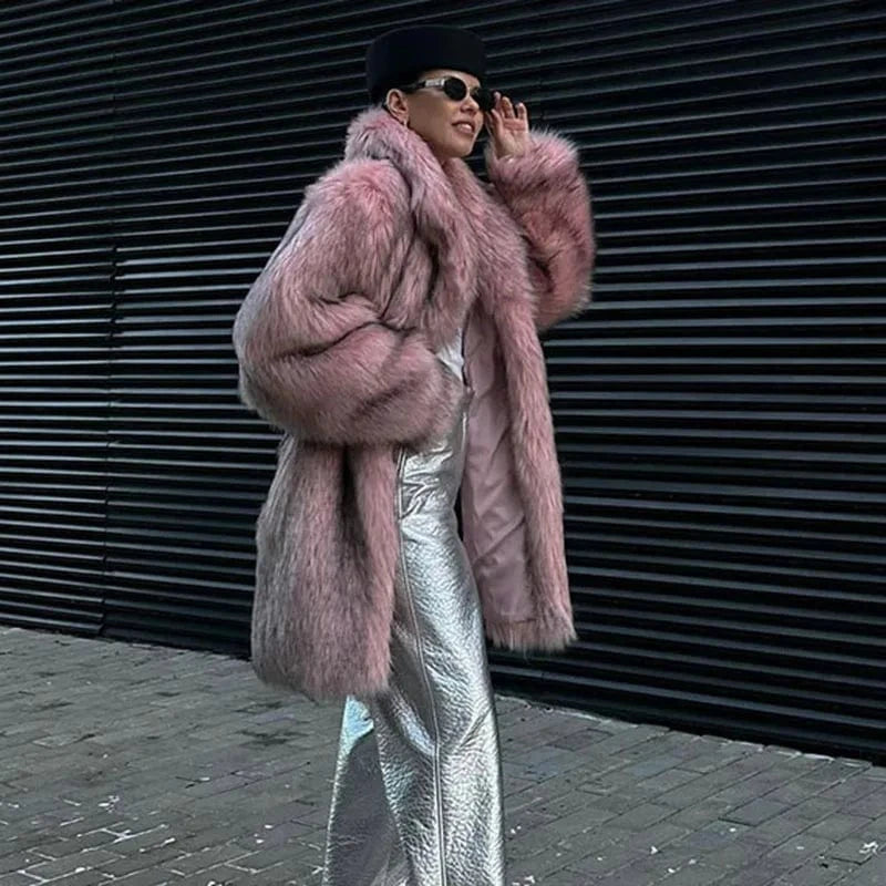 Crafted with premium faux fur, this coat offers a luxurious feel and stylish appearance, perfect for winter elegance.