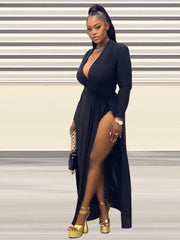 Plus Size Women Clothing 2xl 3xl 4xl 5xl Long Elegant Dress with Sleeves Autumn Ladies Sexy Party Solid Waist Dress Side Slit
