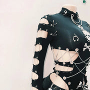 Embrace your dark side with these Skull Print Gothic Clothes, perfect for turning heads and sparking conversations. The bold skull design adds an edgy twist to your wardrobe, while comfy fabric keeps you ready for any adventure. Whether you're hitting a concert or just expressing your unique style, these clothes bring a fun, rebellious vibe to every outfit.