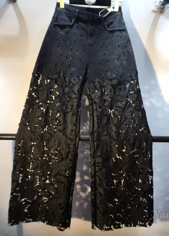 Elevate your denim game with these show-stopping black pants that blend edgy attitude with glamorous flair. Featuring intricate beading and rhinestone embellishments paired with delicate crochet splicing details, they're the perfect statement piece for anyone who refuses to blend in. Whether you're heading out for a night on the town or want to add some sparkle to your everyday look, these pants deliver serious style credentials. Comfortable enough for all-day wear yet eye-catching enough to turn heads wherever you go.