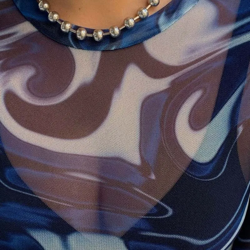 Women's Mesh Sheer Print Crop Top