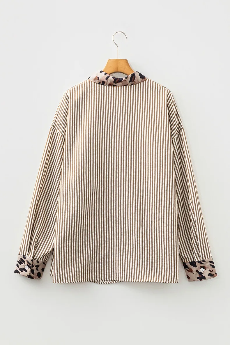Unleash your wild side with these fabulous plus-size leopard print long sleeve shirts! Featuring a timeless animal print that never goes out of style, these shirts offer the perfect blend of comfort and attitude. The long sleeves provide versatile layering options for any season, while the relaxed fit celebrates your curves with confidence. Whether you're dressing up for a night out or keeping it casual, this statement piece lets your personality roar. Pair it with your favourite jeans or dress it up for an instant style upgrade that's unapologetically you.