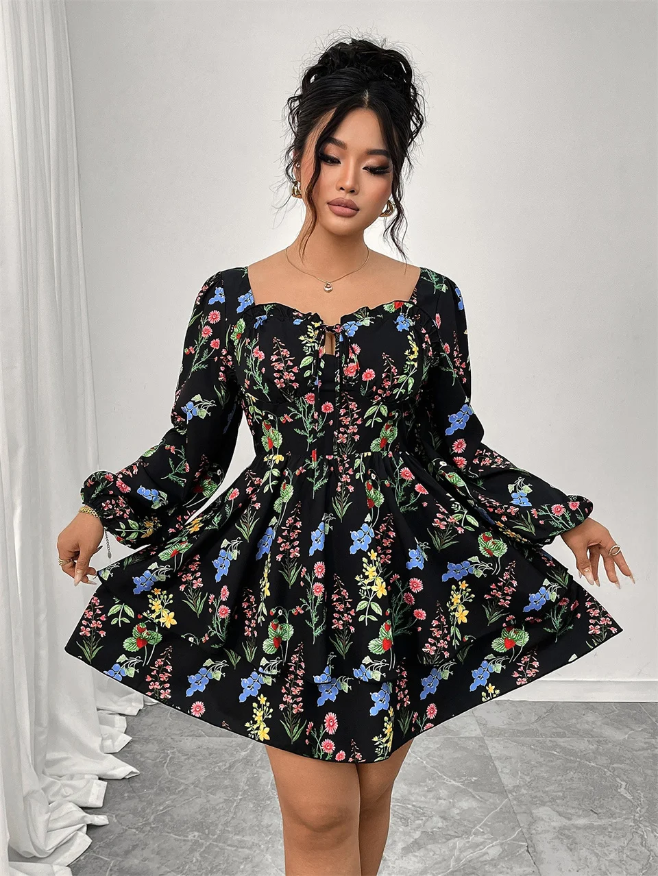 Embrace your curves in this fabulous plus-size dress that's equal parts chic and fun! The sweetheart neckline flatters beautifully while the tie-front detail adds a flirty, adjustable touch that lets you customize your fit. Eye-catching print brings personality to every occasion, whether you're heading out for brunch or a night on the town. Comfortable, confident, and undeniably stylish—this dress celebrates you exactly as you are.