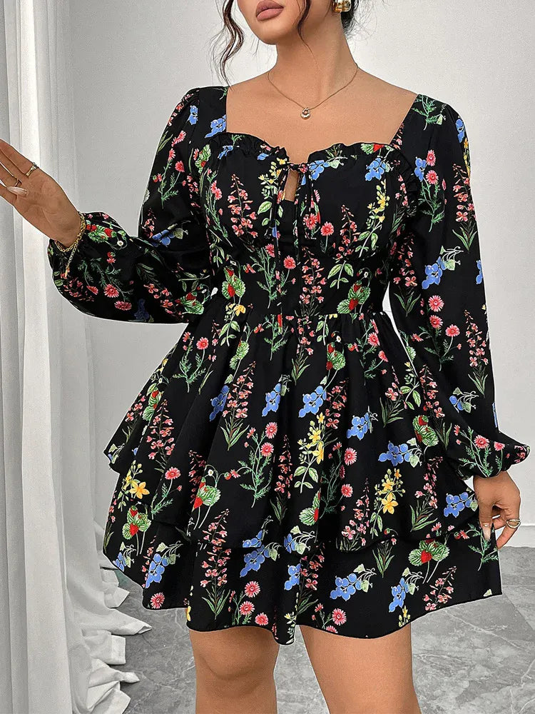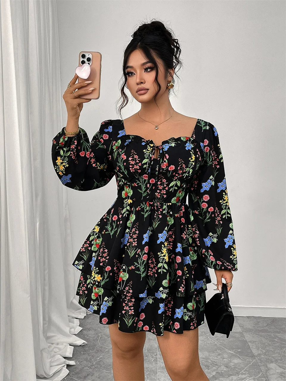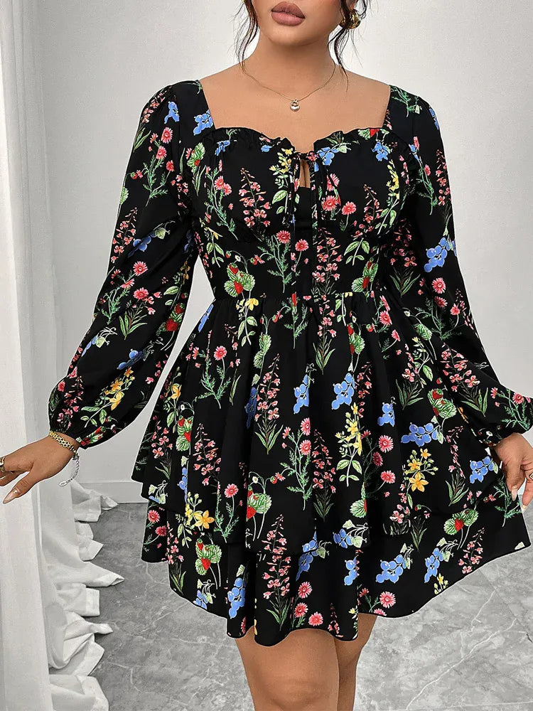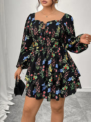Plus Size Sweetheart Neck Tie Front Print Dress