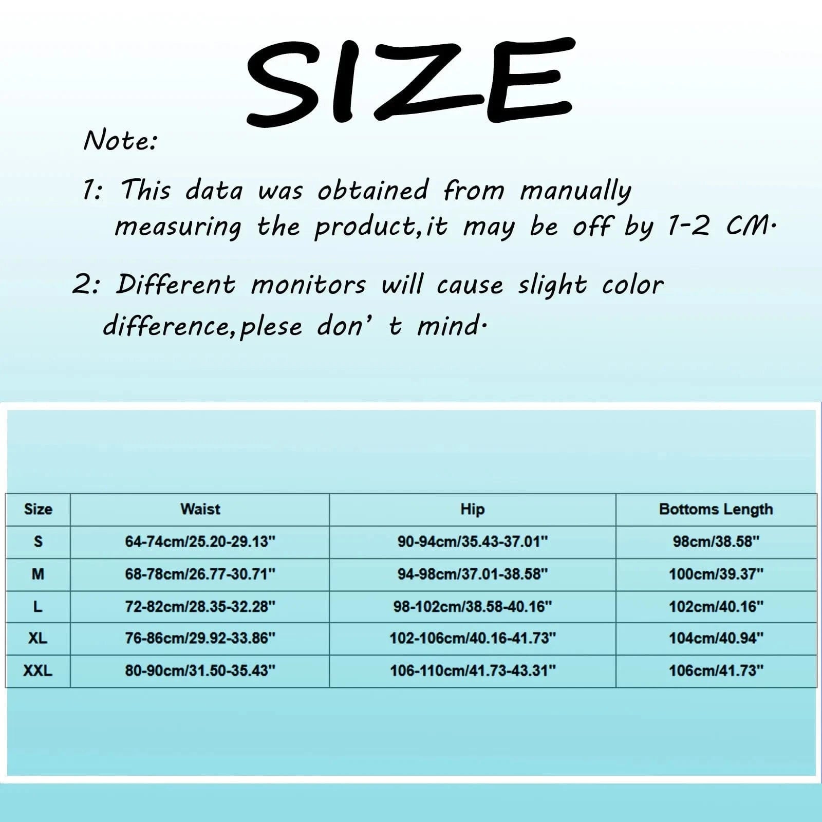 | Size:XL | Waist:76-86cm/29.92-33.86'' | Hip:102-106cm/40.16-41.73'' | Bottoms Length:104cm/40.94'' |