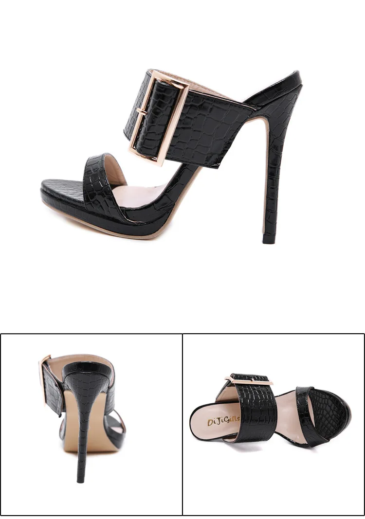 Women's Open Toe High Heeled Slippers with Big Buckle Detail