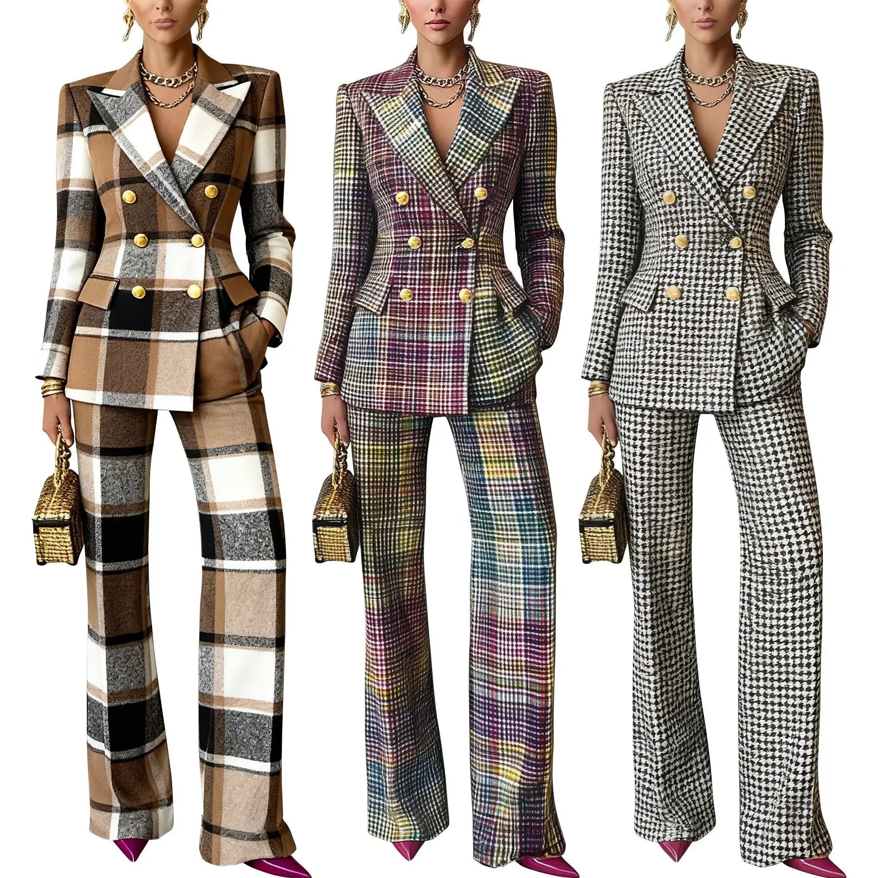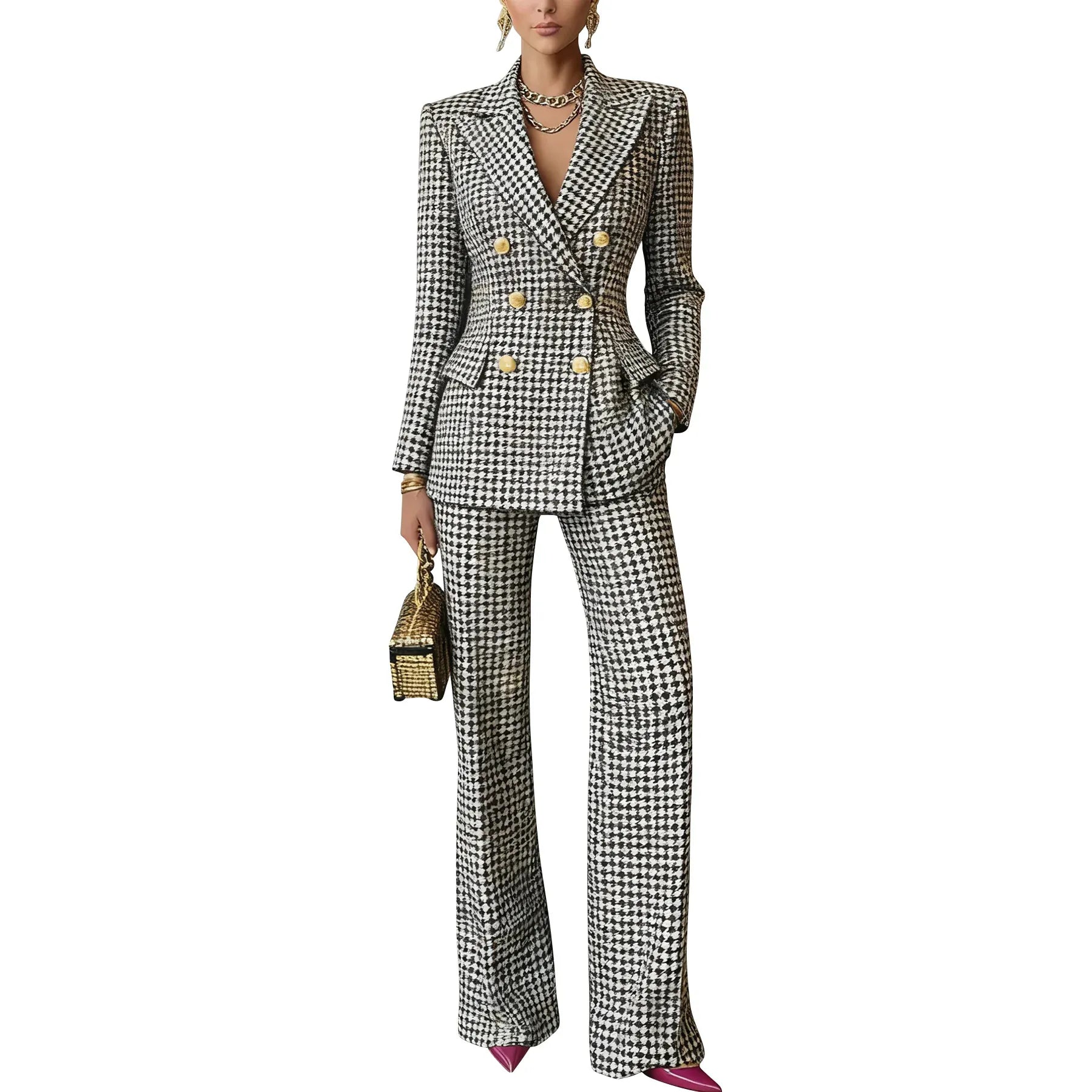 A women's slim-fit check print trousers suit is a modern power-dressing staple that combines traditional heritage patterns with a contemporary, body-contouring silhouette. This suit typically consists of a tailored blazer and matching trousers that taper from the hip to the ankle, designed to create an elongated, streamlined look.