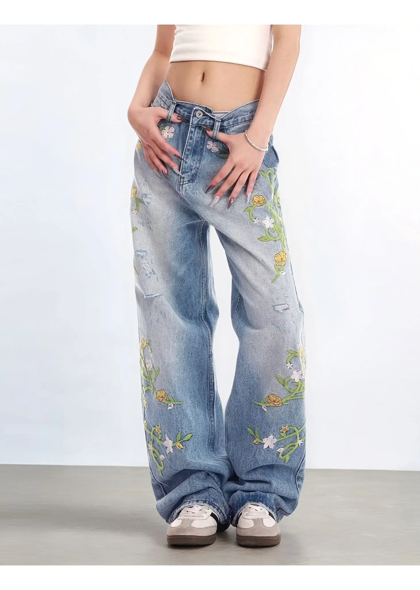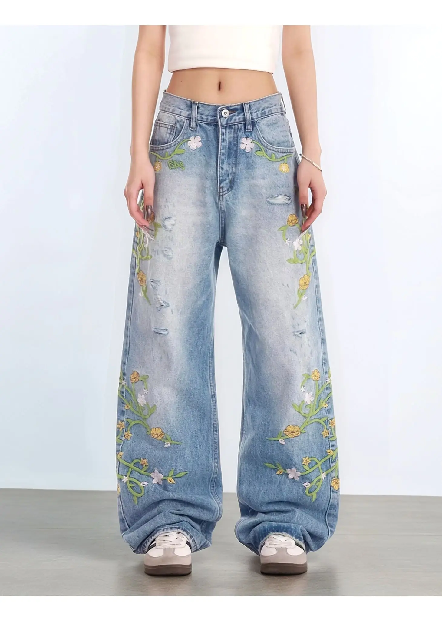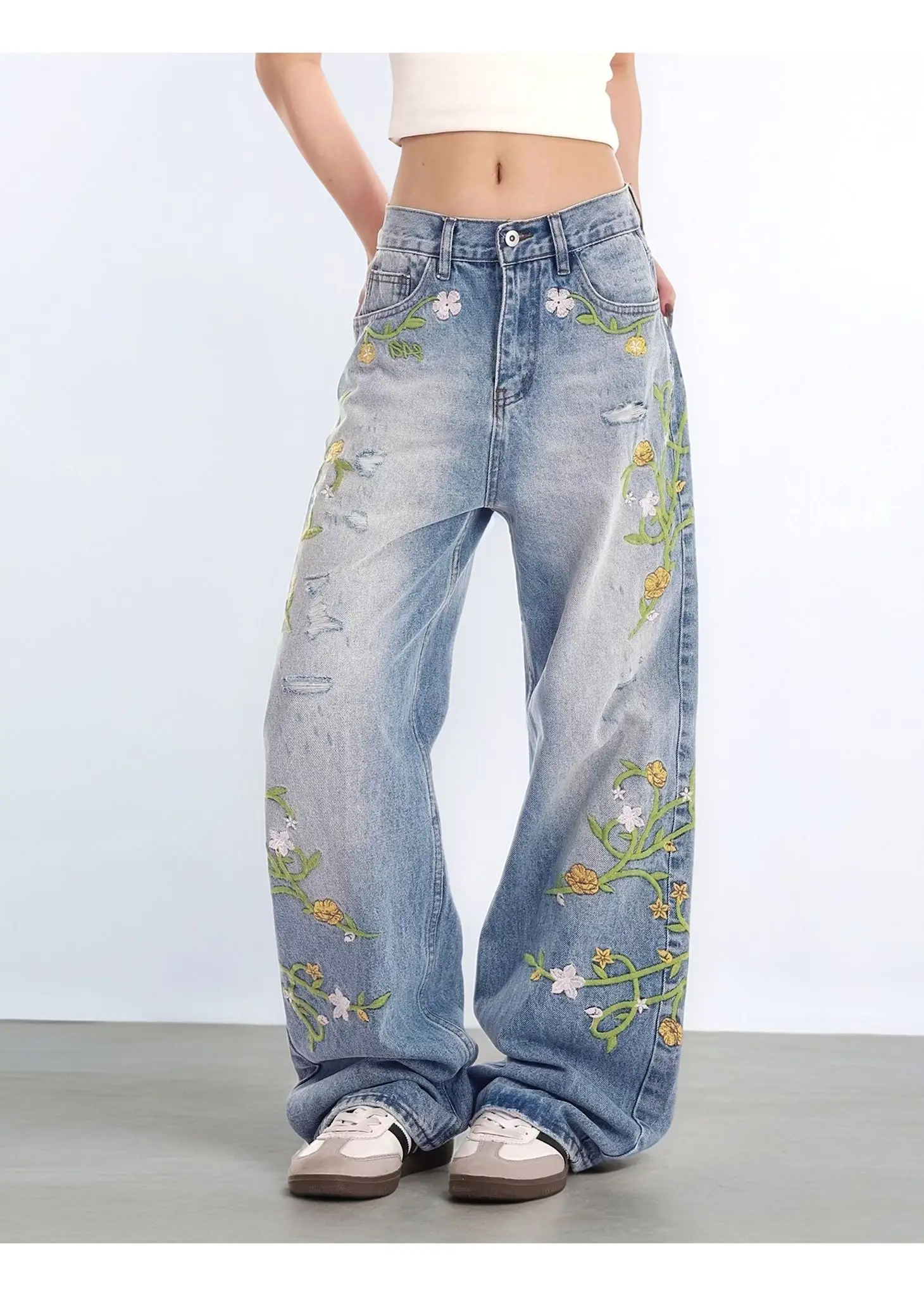 Step back in time with these charming vintage-inspired high waist jeans, featuring delicate floral embroidery that adds a touch of botanical romance to your everyday look. The classic high-rise cut flatters your silhouette while the intricate embroidered details bring personality and flair. Perfect for those who love mixing retro vibes with modern style, these jeans are your ticket to effortless, eye-catching fashion. Dress them up or down—either way, you'll be turning heads with this playful twist on a timeless classic.
